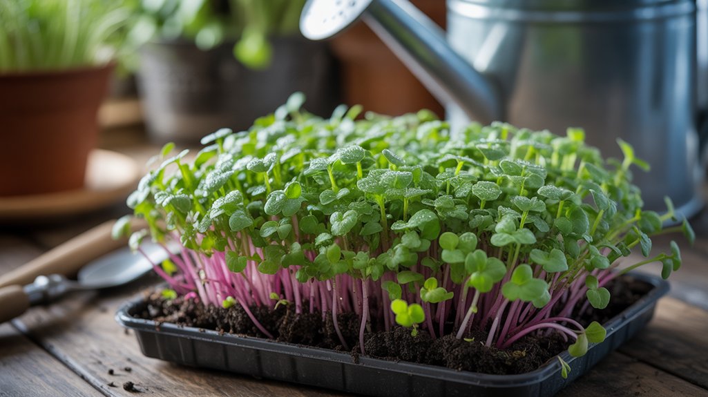 Additionally, ensure the medium is free from chemical fertilizers, which can be too harsh for delicate microgreens. With the right medium, you’ll set a solid foundation for vibrant radish microgreens.