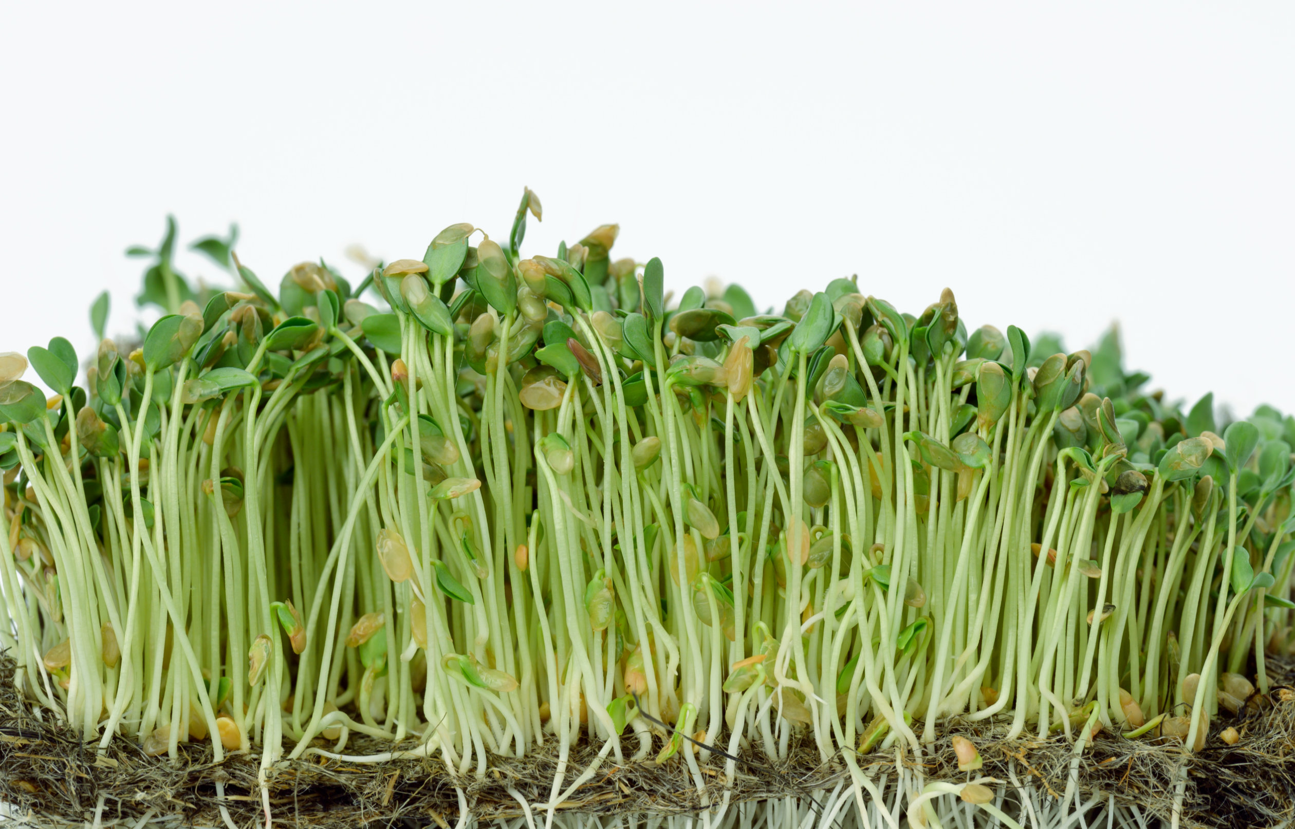 Flax sprouts are ready to harvest in about 2 to 3 days when small green shoots appear.